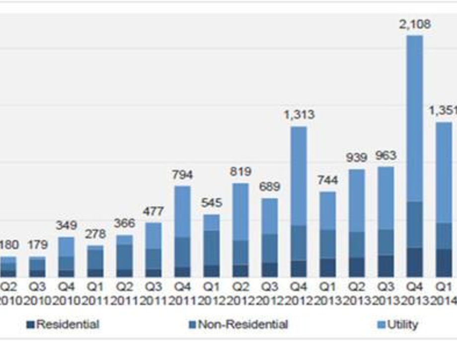 Nach Informationen von GTM Research und dem US-Solar-Market-Insight-Report der Solar Energy Industries Association (SEIA) wurden im dritten Quartal 2014 mit 1.352 Megawatt 41 Prozent mehr Solarleistung als im Vorjahreszeitraum in den USA ans Netz gebracht. Das war das zweit erfolgreichste dritte Quartal für die USA. Damit haben die USA jetzt 16,1 Gigawatt kumulierte Leistung installiert, sowie 1,4 GW der konzentrierten Solartechnik CSP. 300 MW kamen durch private Solardächer zustande. Diese Menge hat es noch nie gegeben. Zudem kamen 50 Prozent davon völlig ohne Subventionen zustande. Obwohl Kalifornien immer noch der größte Solarmarkt ist, ist er nicht der einzige. Die privaten Solardächer verteilten sich zur Hälfte dort und zur anderen Hälfte in den übrigen Staaten. Beliebtes Modell bei der heimischen Solaranlage ist das Mieten oder Leasen. In New York und New Jersey hat dieser Trend weiter zugenommen, während in Arizona und Kalifornia immer mehr gekauft wird. Grund: Installateure bieten attraktive Zahlungsmodelle und gleichzeitig sinken die Modulpreise.