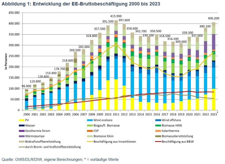 Zahl der Jobs in der EE-Branche knackt wieder die 400.000er-Marke