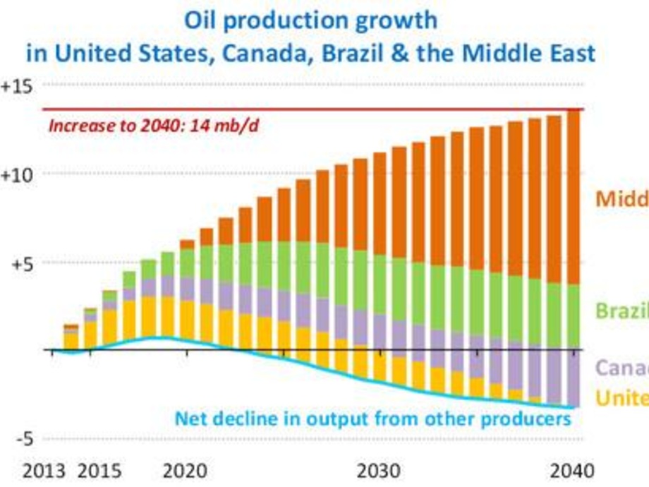 Auch die Öl-Quellen der Nicht-OPEC-Staaten werden ab 2020 schrumpfen, sodass der Mittlere Osten dann Hauptlieferant wird. Der Ölkonsum wird in den Hauptabnehmerstaaten USA, EU und Japan schrumpfen oder 2040 zumindest den Gipfel erreichen, wie in China, Russland und Brasilien. China wird die USA etwa im Jahr 2030 als größter Ölkonsument ablösen. Wachsenden Ölbedarf sieht IEA vor allem in Indien, Subsahara und dem Mittleren Osten und Südost Asien. (Nicole Weinhold)