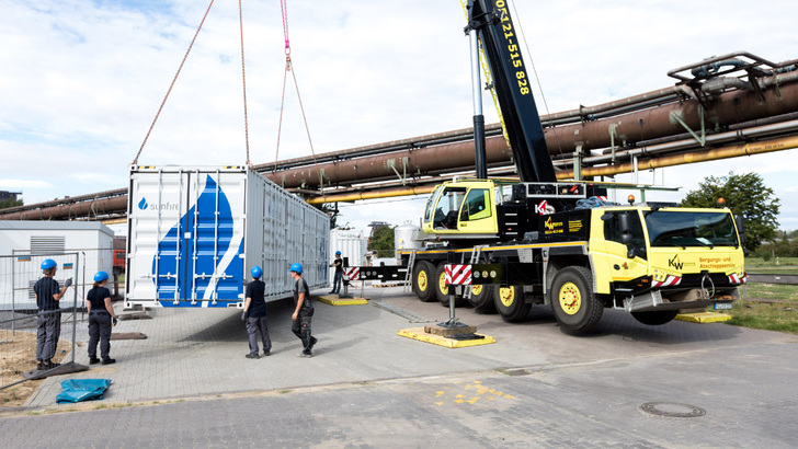 Der Dresdner Hersteller Sunfire hat eine Hochtemperatur-Elektrolyseanlage zur Wasserstoffproduktion auf dem Werksgelände der Salzgitter Flachstahl installiert. Mit einer elektrischen Leistung von immerhin 720 Kilowatt soll die Anlage bis Ende 2022 mindestens 100 Tonnen grünen Wasserstoff aus Ökostrom produzieren, den das Unternehmen in der Stahlproduktion einsetzt. Das wird möglich, wenn der Elektrolyseur in dieser Zeit die geplante Laufleistung von 13.000 Stunden erreicht.