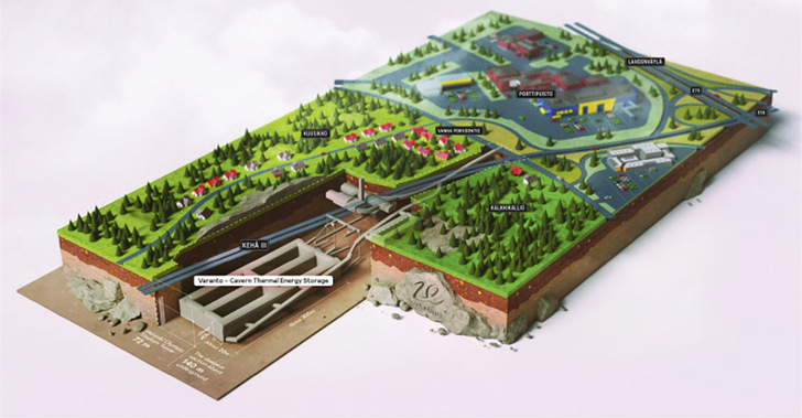 Für 200 Millionen Euro entsteht in der viertgrößten Stadt Finnlands, Vantaa, ein unterirdischer Wärmespeicher mit einem Fassungsvermögen von 1,1 Millionen Kubikmetern. Wie der örtliche Energieversorger Vantaa Energy in einer Presseinformation schreibt, soll damit die Fernwärmeversorgung der Stadt auf möglichst klimaneutrale Quellen umgestellt werden.