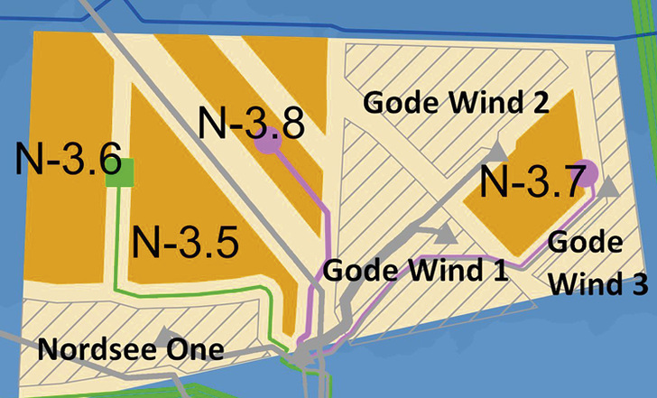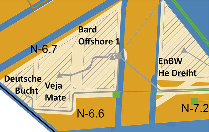 Das dritte RWE-Feld (N6.6) findet sich weiter draußen 90 Kilometer vor den ostfriesischen Inseln. RWE muss abwarten, ein Wettbewerber könnte hier noch ein Projektvorrecht zu den Zuschlagsbedingungen nutzen. In dem von RWE sonst unbespielten Cluster findet sich auch das Luxcara-Feld N-6.7.