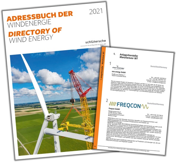 Welche Firmen bieten Direktvermarktung an? Wer kennt sich aus mit Grünem Geld? Wer bietet das passende Wartungskonzept für meine Windkraftanlage? In unserem neuen Adressbuch der Windenergie finden Sie zahlreiche Firmen, die für die Windkraft im Einsatz sind. Wir haben für unsere Leserinnen und Leser die 24. Auflage des Adressbuchs zusammengestellt - und nun ist das Windadressbuch 2021 fertig. Sie finden es zusammen mit zahlreichen Informationen rund um das Thema auf unserer Website: Hier können Sie es sich ansehen.