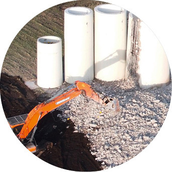Komplettrückbau: mit Demontage der Rotorblätter, Anlagen, Türme und Fundamente – bei anschließender Verwertung und umweltschonender Aufbereitung der Materialien.