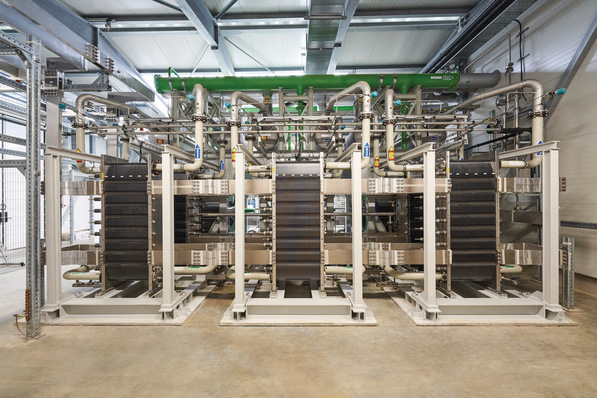 72 Elektrolysemodule produzieren in Ludwigshafen künftig eine Tonne grünen Wasserstoff pro Stunde. Das Projekt von Basf wurde mit rund 125 Millionen Euro gefördert.