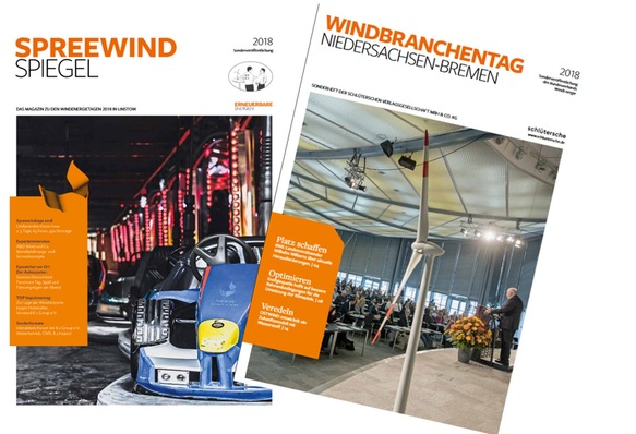 Windbranchentag Niedersachsen-Bremen und Spreewindspiegel - wir halten gleich zwei Publikationen bereit, in denen Sie Ihr Unternehmen präsientieren können.