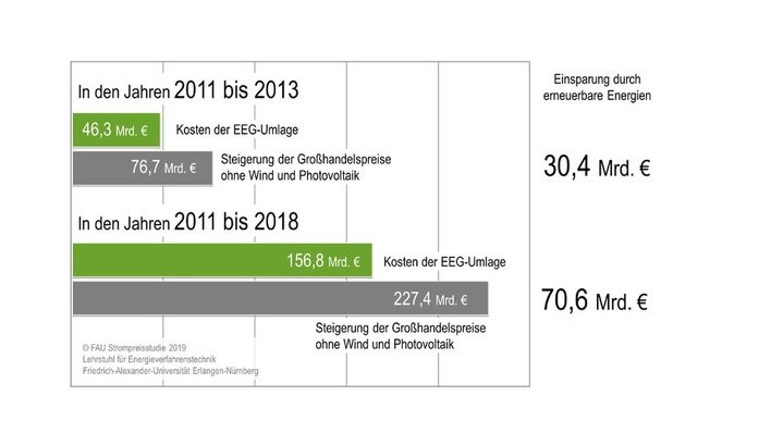 Der Ökostromausbau hat die Strompreise nicht nach oben getrieben. Im Gegenteil: Selbst mit EEG-Umlage haben die Verbraucher in Deutschland weniger für ihren Strom bezahlt als wenn keine Solar- und Windkraftanlagen gebaut würden.
