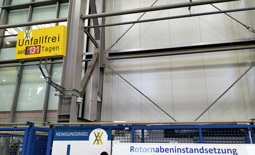 Jetzt stehen beide in einer der zwei Werkshallen auf dem ehemaligen Bard-Gelände, das Wind Multiplikator und OBE bezogen haben. Gewöhnlich finden hier Entwicklungsarbeiten an Rotorblattlagern, Getrieben und Maschinenhausgondeln statt, während die Großkomponenten-Zulieferer die Blattlager oder Getriebe bei sich überholen und dann Wind-Multiplikator-Monteure sie in Emden wieder einbauen. Weil wegen der Betriebsversammlung gerade noch niemand hier arbeitet, sieht die Szenerie wie die unbesuchte Ausstellung eines Provinzmuseums zu einst wegweisender Technik aus.