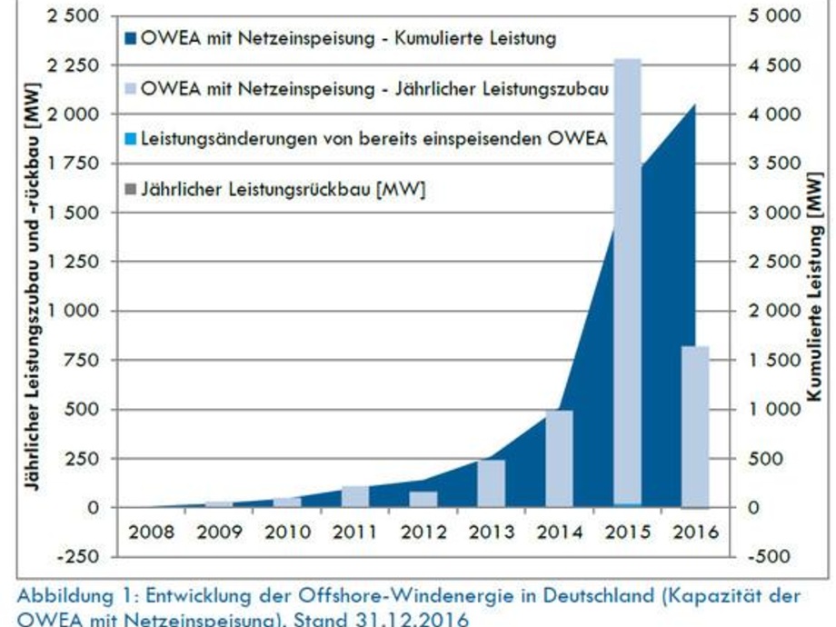 Insgesamt waren Ende vergangenen Jahres 947 Anlagen mit einer Gesamtleistung von 4.108 MW am Netz. Deutsche Windguard hat die Ausbauzahlen für die Windenergie auf See für 2016 im Auftrag von VDMA Power Systems, Bundesverband Windenergie BWE, Stiftung Offshore-Windenergie, Windenergie Agentur WAB sowie Arbeitsgemeinschaft Offshore-Windenergie AGOW erhoben. Heute haben die Verbände sie gemeinsam in Berlin bekanntgegeben.