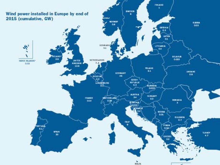 Über alle 28 EU-Staaten verteilt machten die Neuinstallationen in der Windkraft 2015 satte 44 Prozent der gesamten Neuinstallationen und damit den größten Anteil aus. 9.766 Megawatt Onshore-Windkraft und 3.034 MW Offshore wurden ans Netz angeschlossen. Insgesamt kommt Europa damit auf 142 Gigawatt oder 11,4 Prozent Windstromanteil. Giles Dickson, Chief Executive Officer von EWEA kommentierte: "Diese Zahlen zeigen, dass Windkraft der Treiber hinter Europas Umwandlung der Energieversorgung ist." Windkraft trage zur Versorgungssicherheit und Wettbewerbsfähigkeit in Europa bei.