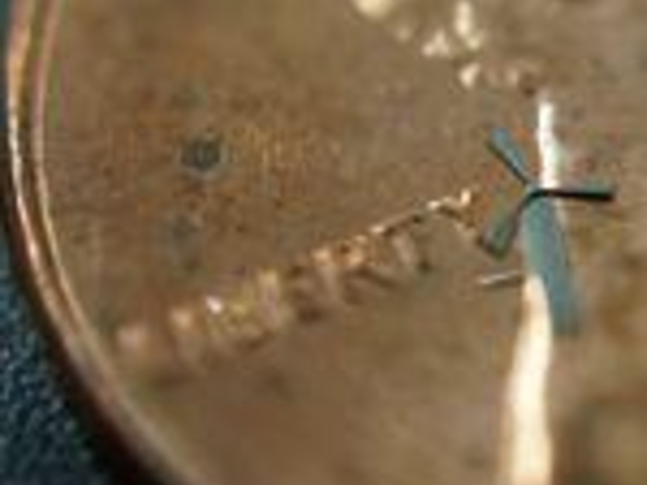 Smitha Rao und Jung-Chih Chiao von der University of Texas Arlington in den USA haben die Kleinstwindenergieanlage entworfen. Von der Blattspitze bis zum Turmfuß misst sie lediglich 1,8 Millimeter. Zehn solcher Anlagen würden auf einem Reiskorn Platz finden.