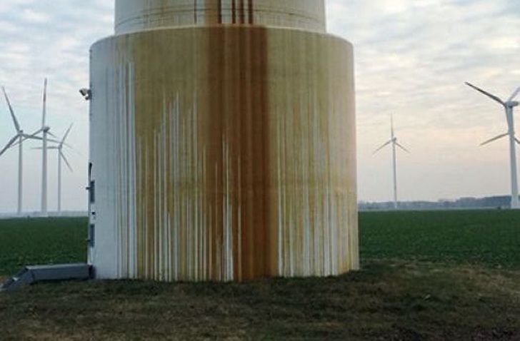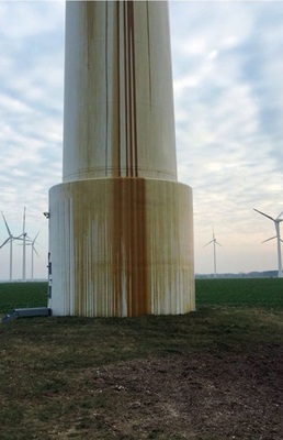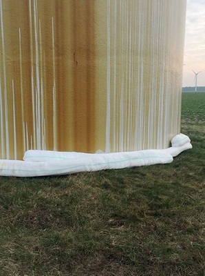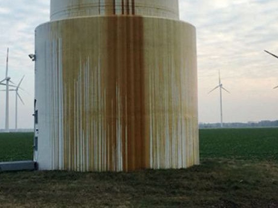 Zu unseren Leistungen gehören die professionelle Dekontamination von Ruß, Öl oder Schimmelsporen ebenso wie die Sanierung von elektrischen und elektronischen Komponenten oder die Maschinenreinigung nach einem Brandschaden. Gerade Öl-Schäden werden in Windenergieanlagen nicht immer sofort bemerkt. Aber wenn das Öl bereits außen am Turm herunterrinnt, gilt es schnell zu handeln, um das Erdreich nicht zu kontaminieren. Zum Auffangen von Getriebe- oder Hydrauliköl hat sich die innovative SecuTub von BELFOR in der Praxis bestens bewährt. Die rasch zu installierende, temporäre Öl-Auffangwanne wird luftdicht mit der Außenwand des Turms verbunden, so dass kein Tropfen daneben gehen kann und die Umwelt sicher geschützt wird.