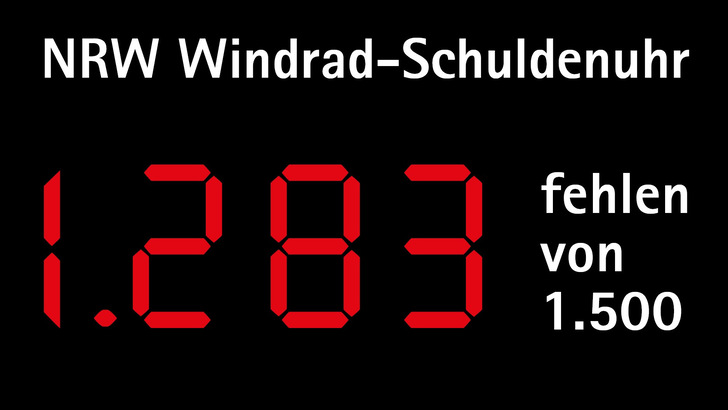 1.283 – so viele Windenergieanlagen fehlen laut der „NRW Windrad Schuldenuhr“ in Nordrhein-Westfalen. Seit einem Jahr läuft diese Uhr am Gebäude der IHK Köln und zeigt: Mit dem Ausbau der Windenergie geht es in Deutschlands bevölkerungsreichstem Bundesland nicht so schnell wie gewünscht.
