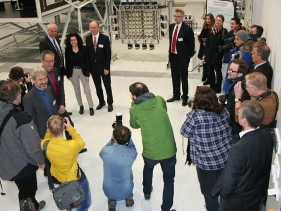 Forwind-Vorstand Martin Kühn gibt den Gästen eine kleine Ahnung von dem was in dem Labor unter anderem untersucht wird. "Das ist ein Kraftstoff-Labor", so der Wissenschaftler. Mit Kraftstoff meint er die Energie aus der Windkraft. Turbulenten ließen sich mit Laser, über kurze oder lange Entfernungen sichtbar machen. Als Beispiele zeigt der die überstrichene Fläche eines Windrotors uns die Turbulenzen innerhalb eines Windparks, sichtbar durch unterschiedliche Verfärbungen. Er zeigt in einer Sumulation, was passiert, wenn ein Sturm über Niedersachsen geht. Man sieht dabei die Rotoren, die auf Nennleistung laufen, bis der Sturm so stark wird, dass die Sturmabschaltung anspringt und die Anlagen nicht länger Strom produzieren. Er betont, wie wichtig es sei, dass sowohl Freifeld- als auch Laboruntersuchungen stattfinden und die Ergebnisse verglichen werden können.
