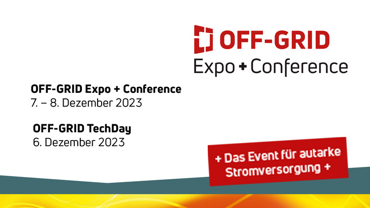 Informieren Sie sich über die neuesten Trends der autarken Energieversorgung auf der internationalen Kongressmesse OFF-GRID Expo + Conference vom 07. – 08.12.2023 in Augsburg und profitieren Sie auch von einem interaktiven bunten Rahmenprogramm! Zusätzlich bieten einige Unternehmen am 06.12.2023, dem Tag vor Beginn der OEC, im Rahmen des TechDay exklusive Produkttrainings im Tagungscenter der Messe Augsburg an. Die Teilnahme daran ist kostenfrei und bedarf einer Voranmeldung während des Ticketkaufs.