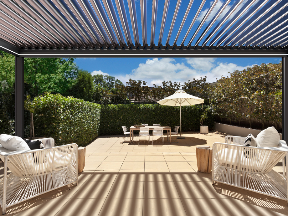 Die PV-Module aus monokristallinen, dunklen Solarzellen, die unter einem speziellen Solarglas einlaminiert sind, erreichen einen relativ hohen Wirkungsgrad. Dabei gibt es die Möglichkeit zur freien Größen-Skalierung und optionale Sonderfarben. Eine speziell für das System entwickelte Software kann die gewünschte Ausrichtung der Lamellen bestimmen, wahlweise für eine angenehme Temperatur oder dank der Sonnennachführung zugunsten eines hohen Energieertrages. Gesteuert wird die Pergola per Funkfernbedienung oder Smartphone. Bei einem Wetterumschwung schließen sich die Solarlamellen automatisch und leiten den Regen im Inneren der Struktur ab. Im Winter hält das Dach Eis und Schnee ab.