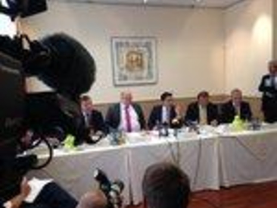 Öffentlichkeitswirksame Unterschriften: Zum Auftrakt der Pressekonferenz im Berliner Albrechtshof besiegelten Bundesumweltminister Altmaier und Bundeswirtschaftsminister Rösler sowie Vertreter der großen Übertragungsnetzbetreiber Amprion, 50Hertz, Tennet und Transnet ein Eckpunktepapier zur finanziellen Beteiligung von Bürgern am Netzausbau. "Wir sind überzeugt, dass wir mit dem heutigen Tag einen Schritt weiter gekommen sind bei der Umsetzung der Energiewende", sagt Altmaier.