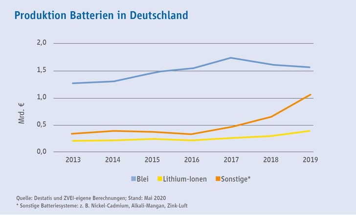 Die Zahl der Anwendungen wachse täglich, so Eckert. Batterien werden nicht nur nach wie vor als Blei-Variante zum Starten von Fahrzeuge benötigt. Kleine Ausführungen finden sich in Hörgeräten, Lithium-Ionen-Batterien werden in Autos verbaut. Und auch E-Bikes brauchen Strom. Um 21 Prozent ist der Markt für Lithium-Ionen-Speicher 2019 gegenüber 2018 gewachsen, im Vergleich zu 2013 hat er sich verachtfacht.