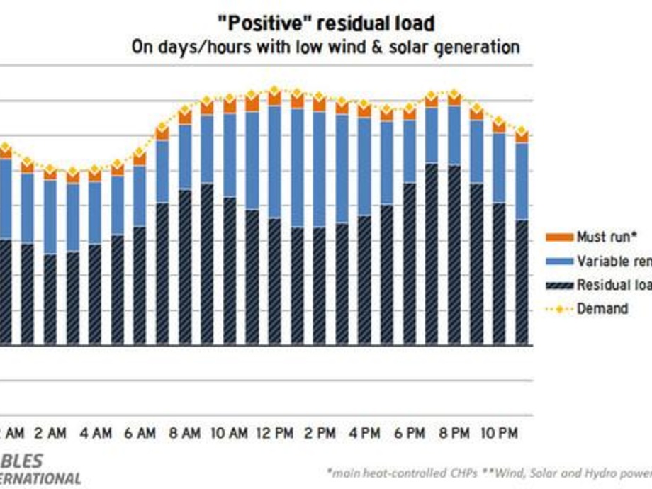 Whenever renewables like wind and solar produce less electricity than the current demand, the residual load is thus "positive". This is (still) the typical day-to-day reality of our current electricity supply. How can it be covered?