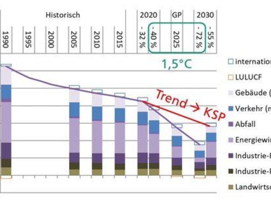 Würde die Bundesregierung nur ihre jetzt beschlossenen Maßnahmen umsetzen, würde sie eine Reduzierung des Treibhausgas-Ausstoßes nur um 32 Prozent im Vergleich zum Basisjahr 1990 erreichen, das den Klimazielen zugrunde liegt. Und würde Deutschland dann auf diesem Pfad im bisherigen Trend der Energiewende verbleiben, käme es bis 2030 auf eine Treibhausgasreduktion um 55 Prozent im Vergleich zu 1990. Dies entspricht zwar noch immer dem offiziellen Ziel der Bundesregierung. Nur würde es dem Ziel der internationalen Klimakonferenz von Paris nicht mehr gerecht werden können. Dort hatten die meisten Staaten wie auch Deutschland zugestimmt, die weltweite Klimaerwärmung so gut wie möglich auf einen Anstieg der mittleren Jahrestemperatur um 1,5 Grad Celsius zu beschränken, maximal aber auf unter 2 Grad.