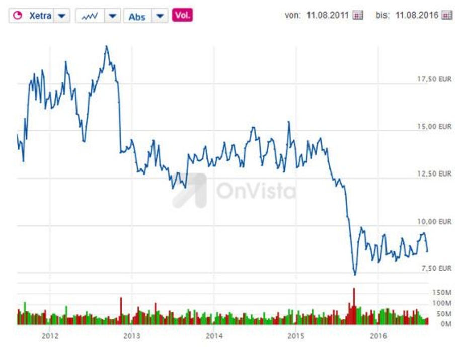 Übrigens: Einen weiteren Gewinnrückgang verbuchte auch RWE. Der Gewinn vor Zinsen, Steuern und Abschreibungen sind im ersten Halbjahr um fünf Prozent auf rund drei Milliarden Euro gefallen. Konzern-Chef Peter Terium ist dabei, den Regenerativbereich Innogy von der RWE AG abzuspalten, um dann dort an die Geschäfte zu führen – und sich von der Altlast RWE zu verabschieden.