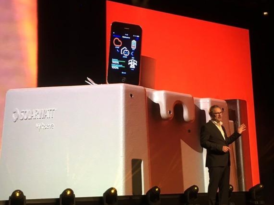 Dass sich die Installationsfreundlichkeit verbessert habe, zeigte Solarwatt gleich live. Eine Mitarbeiterin installierte das Gerät schnell an den dafür vorbereiteten Schienen an der Seite der Bühne. „Sie können die Geräte in kürzester Zeit einbringen und zusammengesteckt“, so Neuhaus. Das sei auch wichtig für Handwerker, die sich nicht jedes Mal mit neuer Technik auseinandersetzen wollen. Die Wartung sei zudem extrem einfach. Andreas Gutsch, Geschäftsführer des Technologiezentrums Solarwatt Innovation, erklärte dazu: „Der Kundennutzen ist Treiber für Entwicklung gewesen. Installateurskunden können mit demselben Grundelement weiter arbeiten. Wir haben aus der Vergangenheit gelernt, wie schwer es für Installateure ist, mit neuer Technik umzugehen. Jetzt macht der Kunden nur zwei Griffe, statt immer unterschiedlicher Klötze."