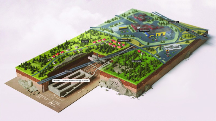 Der saisonale thermische Energiespeicher Varanto (finnisch für Gewölbe) entsteht im Felsgestein 100 Meter unter Vantaa, wo insgesamt drei Kavernen mit einer Breite von 20 Metern, einer Länge von 300 Metern und einer Höhe von 40 Metern gegraben werden sollen. Das heiße Wasser, mit dem sie befüllt werden, wird zusätzlich unter Druck gesetzt, um Temperaturen von bis zu 140 Grad zu erreichen, ohne dass das Wasser kocht oder verdampft. Die thermische Gesamtkapazität des voll aufgeladenen saisonalen thermischen Energiespeichers beträgt laut Vantaa Energy 90 Gigawattstunden und könne eine mittelgroße finnische Stadt ein ganzes Jahr lang beheizen. 2028 soll er nach vier Jahren Bauzeit in Betrieb gehen.